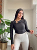 Suave, ligera y con strech . Ideal para mantenerte cómoda sin sacrificar estilo, viene forrado en el frente y la tela trae un leve brillo.